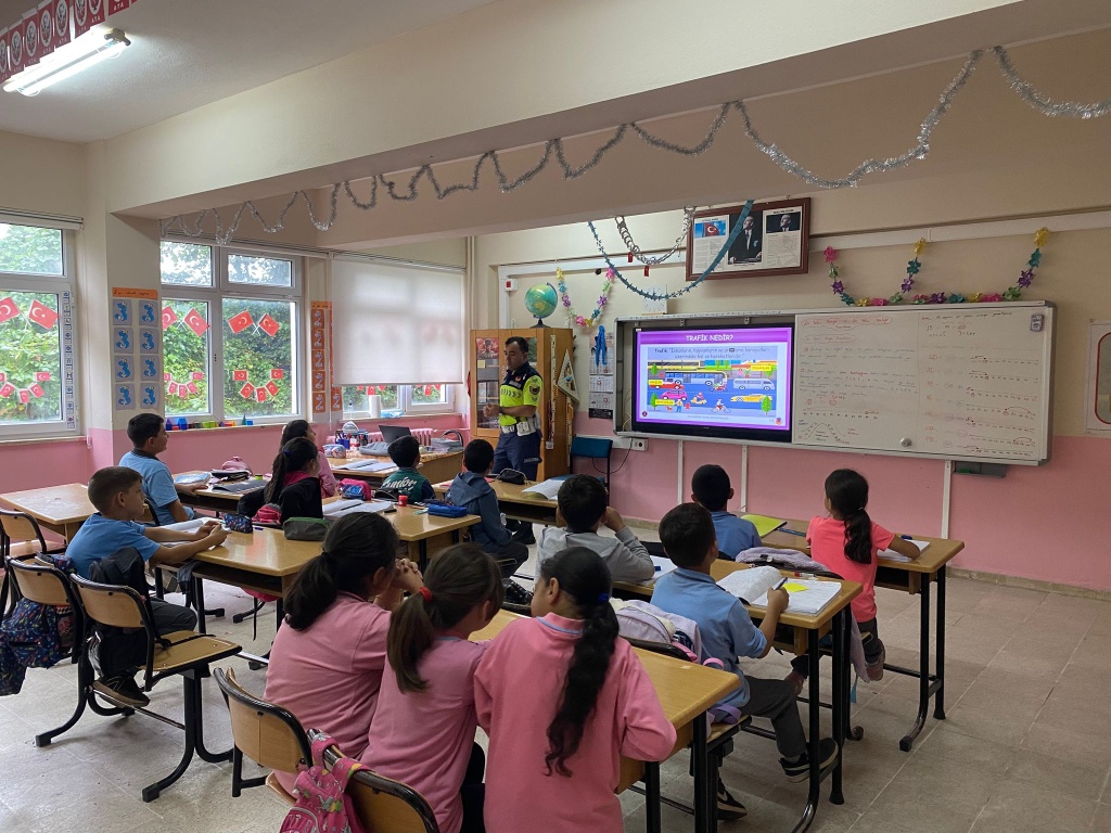 Eğitim kapsamında öğrencilerimize; yaya geçidi kullanımı, emniyet kemeri takmanın önemi, trafik ışıklarının anlamı ve trafikte güvenli davranışlar gibi temel kurallar aktarıldı.